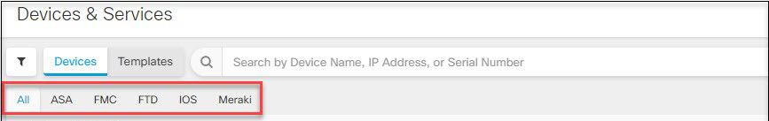 The CDO Devices & Services interface now classifies devices and templates based on their type and displays them in the corresponding tabs dedicated to each device type.